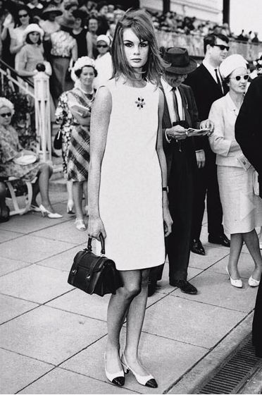 – To μοντέλο Τζιν Σρίμπτον φοράει ένα κοντό φόρεμα στους αγώνες της Μελβούρνης. Η εμφάνιση της προκάλεσε πολλές αντιδράσεις ανάμεσα στους παρευρισκομένους, 1965.