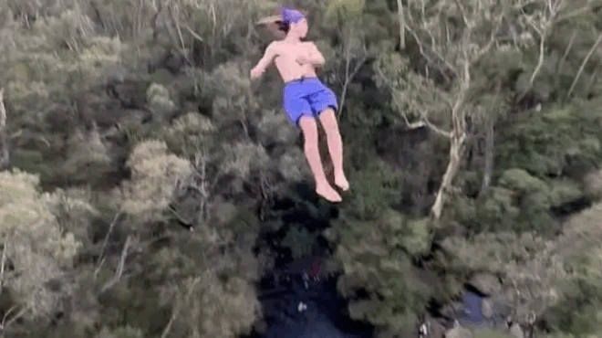 Το άλμα των 42,5 μέτρων από τον καταρράκτη Minnehaha στα Γαλάζια Όρη της Νέας Νότιας Ουαλίας έγινε στις 11 Ιουνίου. Η κατάληξή του ήταν τραγική: ο νεαρός υπέστη κάταγμα στο κρανίο, έσπασε την πλάτη του, έπαθε διάσειση και ρήξη τυμπάνου. Σύμφωνα με τη DailyMail.com, χρειάστηκε να υποβληθεί σε δύο μεγάλες χειρουργικές επεμβάσεις και να ξεκινήσει μακρά περίοδο αποκατάστασης.