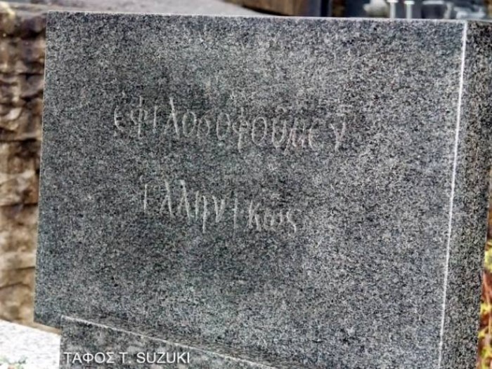 12. Ιαπωνία! – «Εφιλοσοφούμεν ελληνικώς». Η επιγραφή αυτή, δίκην επιτυμβίου στήλης, βρίσκεται στον τάφο του ιάπωνα καθηγητή και επιτίμου προέδρου της «Διεθνούς Εταιρείας Ελληνικής Φιλοσοφίας» «Teruo Suzuki».