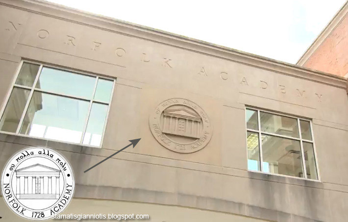 19. Στην πρόσοψη της Ακαδημίας Norfolk, στην πολιτεία Virginia των ΗΠΑ, αναγράφεται η φράση: «Ου πολλά αλλά πολύ».