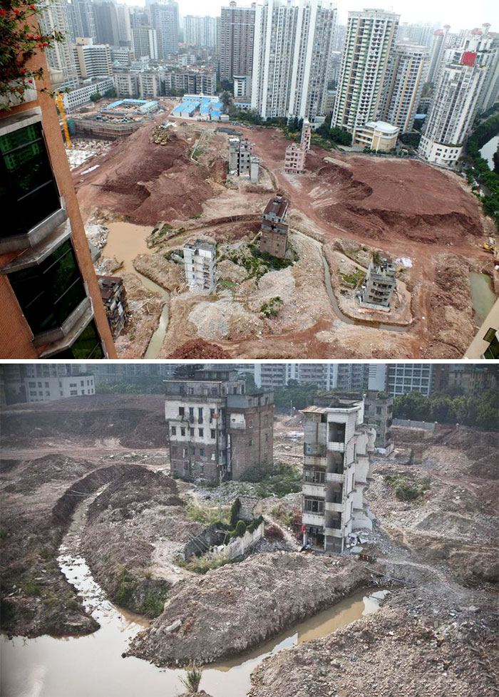 “Στο Γκουανγκζού, οι Αρχές έπρεπε να κατασκευάσουν έναν περιφερειακό δρόμο γύρω από αυτό το συγκρότημα διαμερισμάτων, επειδή τρεις οικογένειες δεν ήθελαν να φύγουν από εκεί”