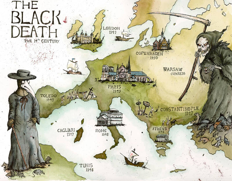 Θεωρείται η μεγαλύτερη ανθρωπιστική καταστροφή στην ιστορία με τον δείκτη θνησιμότητας να φτάνει σε πρωτόγνωρα επίπεδα ξεπερνώντας κάθε προηγούμενο. Ξέσπασε στα μέσα του 14ου αιώνα και πήρε την αποτρόπαια ονομασία «Μαύρος Θάνατος». Ο λόγος για την πανώλη που ξεκλήρισε ολόκληρες περιοχές της μεσαιωνικής Ευρώπης σε τέτοιο σημείο, που οι ζωντανοί δεν έφταναν για να θάψουν τους πεθαμένους.