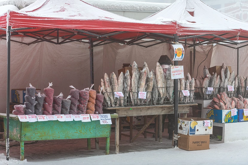 Η παραδοσιακή κουζίνα του Γιακούτσκ περιλαμβάνει κατεψυγμένα ψάρια της Αρκτικής σερβιρισμένα με σάλτσα μουστάρδας, ενώ τα θερμοκήπια είναι η μόνη πηγή φρέσκων λαχανικών.