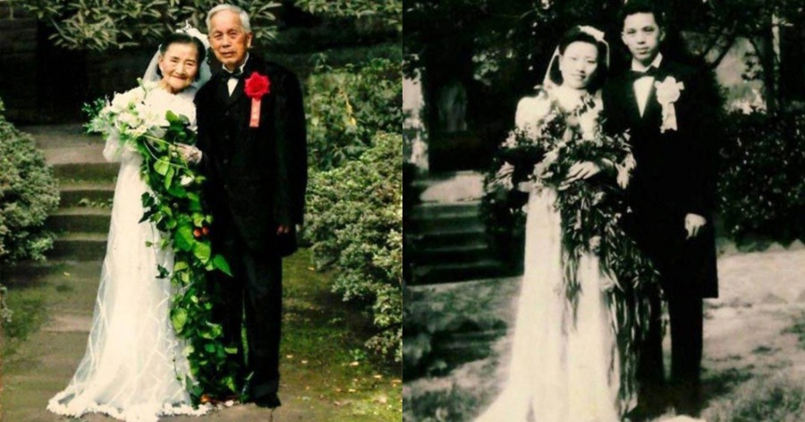 Φωτογραφίες γάμου: Ένα ηλικιωμένο ζευγάρι από την Κίνα γιόρτασε την 70η επέτειο του γάμου του. Οι Cao Yuehua και Wang Deyi παντρεύτηκαν στο ίδιο μέρος. Τα παιδιά βοήθησαν στις ετοιμασίες του γάμου για το ζευγάρι που γνωρίστηκε για πρώτη φορά το 1943. Ήταν στην περιοχή Yunnan, σε ένα φοιτητικό πάρτι.