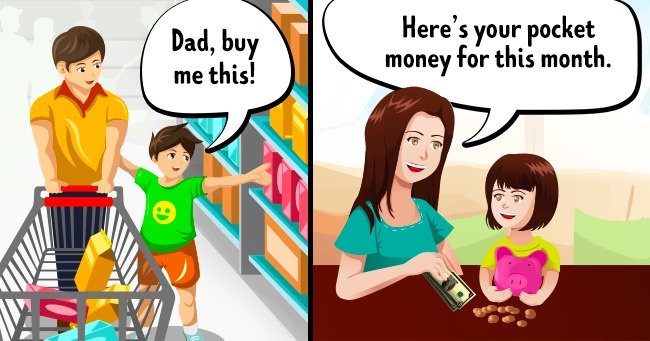 Όταν πηγαίνουν για ψώνια, τα παιδιά συνήθως παραμένουν ήρεμα και δεν κάνουν μεγάλη φασαρία. Αρχίζουν να παίρνουν χαρτζιλίκι από την ηλικία των 7 ετών και τους επιτρέπεται να τα ξοδεύουν όπως θέλουν. Το μηνιαίο χαρτζιλίκι, συνήθως ισούται με την ηλικία του παιδιού.