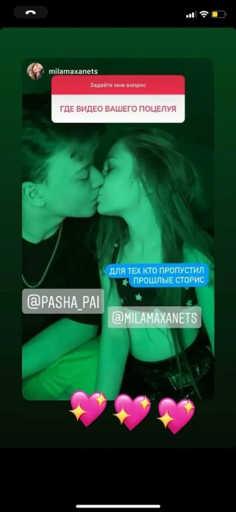 Σε ανάρτησή της στο Instagram, η οποία πλέον έχει διαγραφεί, η 8χρονη ανακοίνωσε στους μισό εκατομμύριο followers της ότι βρίσκεται σε σχέση με τον 13χρονο Pasha Pai, επίσης μπλόγκερ που ζει στη Μόσχα.