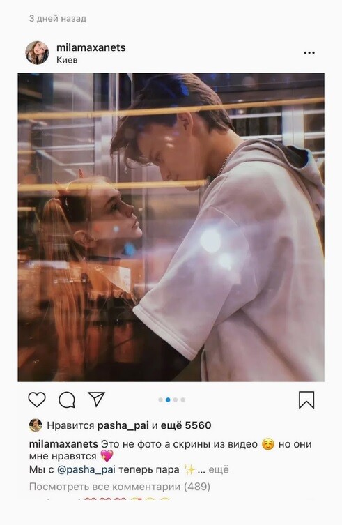 Άλλη φωτογραφία στον λογαριασμό του Pasha δείχνει τους δυο τους μαζί ενώ η Milana βουρτσίζει τα δόντια της φορώντας το εσώρουχό της. Μόλις έγινε γνωστή η είδηση της σχέσης τους, αφαιρέθηκαν από τους λογαριασμούς τους τα περισσότερα από τα «προκλητικά» βίντεο και φωτογραφίες τους.