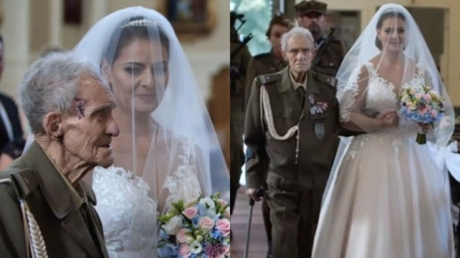 Παππούς 94 ετών: Το βίντεο από την τελετή του γάμου της εγγονής του Bronislaw Grom Karwowski, Joanna, ο οποίος τη συνόδευσε στην εκκλησία για να παντρευτεί