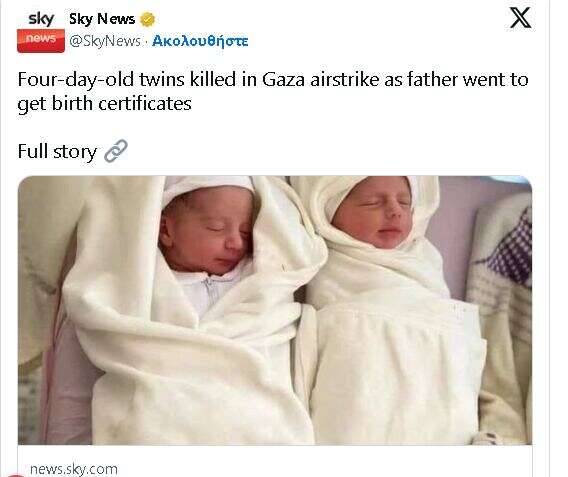 Τραγική ειρωνεία με νεογέννητα δίδυμα που σκοτώθηκαν σε ισραηλινό αεροπορικό πλήγμα στη Γάζα, την ώρα που ο πατέρας τους ήταν σε τοπική κυβερνητική υπηρεσία για να δηλώσει τη γέννησή τους.