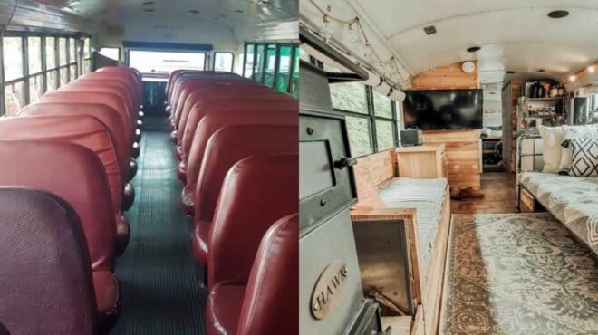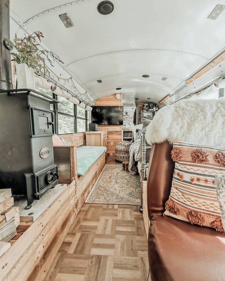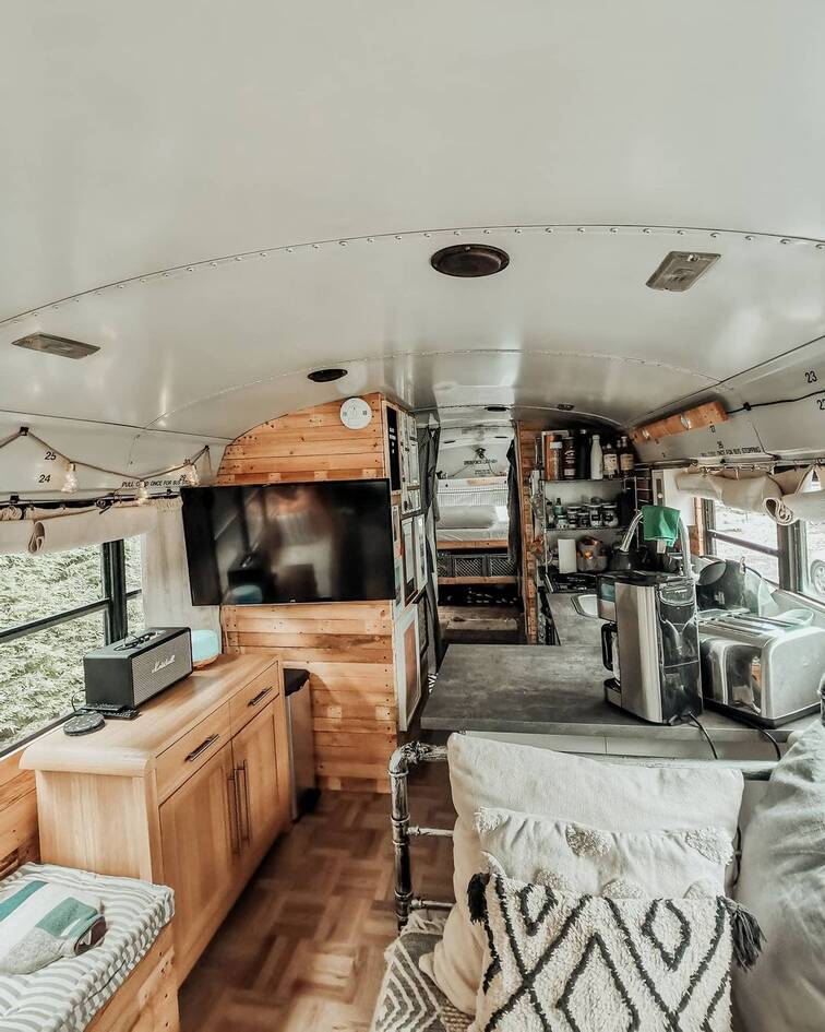 Αν και μόλις 28 τετραγωνικά μέτρα, το λεωφορείο Otto the skoolie, έχει ολοκληρωμένη κουζίνα και μπάνιο, κρεβατοκάμαρα, πλυντήριο ρούχων και τζάκι! Επίσης στην ευρύχωρη αυλή του, το ζευγάρι έχει τοποθετήσει τζακούζι και ψησταριές μπάρμπεκιου. Η Ailsa, ο Paul και τα δυο τους σκυλάκια έχουν πραγματικά ότι θέλουν σε αυτό το λιλιπούτιο δημιούργημα και μάλιστα είναι αρκετά γνωστοί στα social media για αυτό τους το δημιούργημα.
