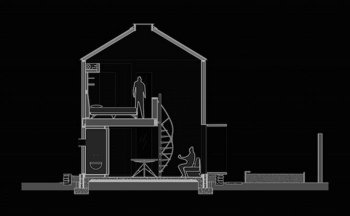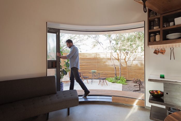 Από εκεί και πέρα, έβαλε πόρτες, παράθυρα, ντουλάπια, πάγκο, ακόμη και καναπέδες. Έτσι, αξιοποίησε κάθε κομμάτι του διαθέσιμου χώρου του.