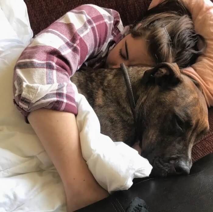 “Πολλά μέλη της οικογένειάς μας, που προηγουμένως ήταν προκατειλημμένοι με αυτή την ράτσα, άλλαξαν γνώμη όταν άρχισαν να περνούν χρόνο μαζί του. Κερδίζει τους ανθρώπους, ανεβαίνοντας πάνω στα πόδια τους για να κοιμηθεί”, ανέφερε η Σγουίρς.
