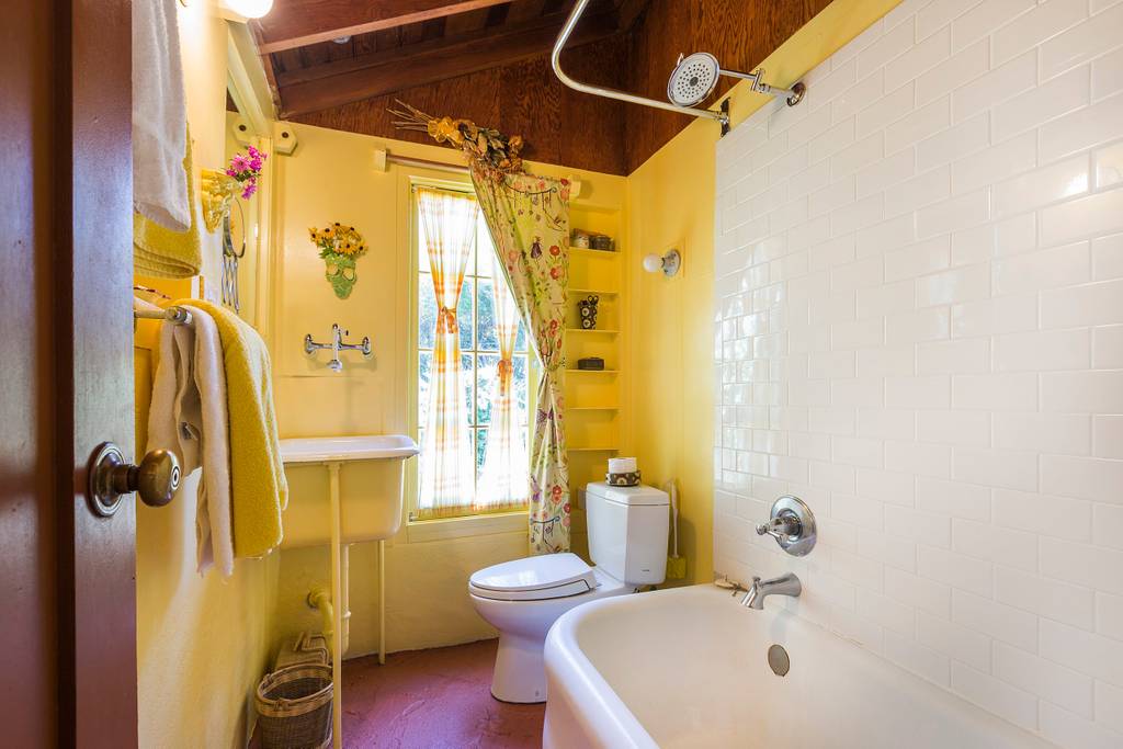 Το μπάνιο, μπορεί να μην είναι σύγχρονο και καλόγουστο, αλλά δεν υστερεί ως προς τις υπηρεσίες του. Έχει όλα όσα χρειάζεται κάποιος. Μάλιστα, η πόρτα δίπλα από το κρεββάτι οδηγεί σε μία υπέροχη βεράντα.