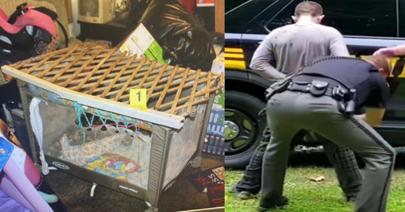 “Το ενός έτους κοριτσάκι κρατούσε μία πίπα μεθαμφεταμίνης (ισχυρό ναρκωτικό) και την έβαζε στο στόμα του. Το τριών χρονών αγοράκι βρισκόταν κλειδωμένο σε αυτοσχέδιο κλουβί, από το οποίο ήταν αδύνατον να βγει”, επεσήμανε ο Σερίφης Lanny North στα μέσα ενημέρωσης.
