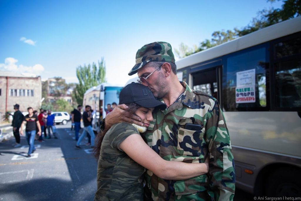 Αρμένιοι εθελοντές: Χιλιάδες Αρμένιοι αποχαιρετούν τους ανθρώπους τους. Πρόκειται για άτομα της οικογένειάς τους (σ.σ. γονείς, αδέρφια, ξαδέρφια, θείοι) και άτομα από το φιλικό περιβάλλον τους. Πολλοί ενδεχομένως να αποχαιρετούν και τον έρωτα της ζωής τους. Όλα αυτά, διότι πρόκειται να πάνε να πολεμήσουν στο μέτωπο.