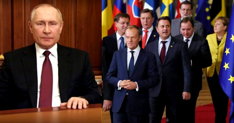 «Οι περιστάσεις μάς κάνουν να λάβουμε αποφασιστικά και άμεσα μέτρα. Οι λαϊκές δημοκρατίες του Ντονμπάς ζήτησαν βοήθεια από τη Ρωσία. Στο πλαίσιο αυτό, σύμφωνα με το άρθρο 51, μέρος 7 του Χάρτη των Ηνωμένων Εθνών, με την κύρωση του Ομοσπονδιακού Συμβουλίου και σύμφωνα με τις συνθήκες φιλίας και αμοιβαίας συνδρομής με το DPR και το LPR, που επικυρώθηκαν από την Ομοσπονδιακή Συνέλευση, αποφάσισα να διεξάγω ειδική στρατιωτική επιχείρηση».