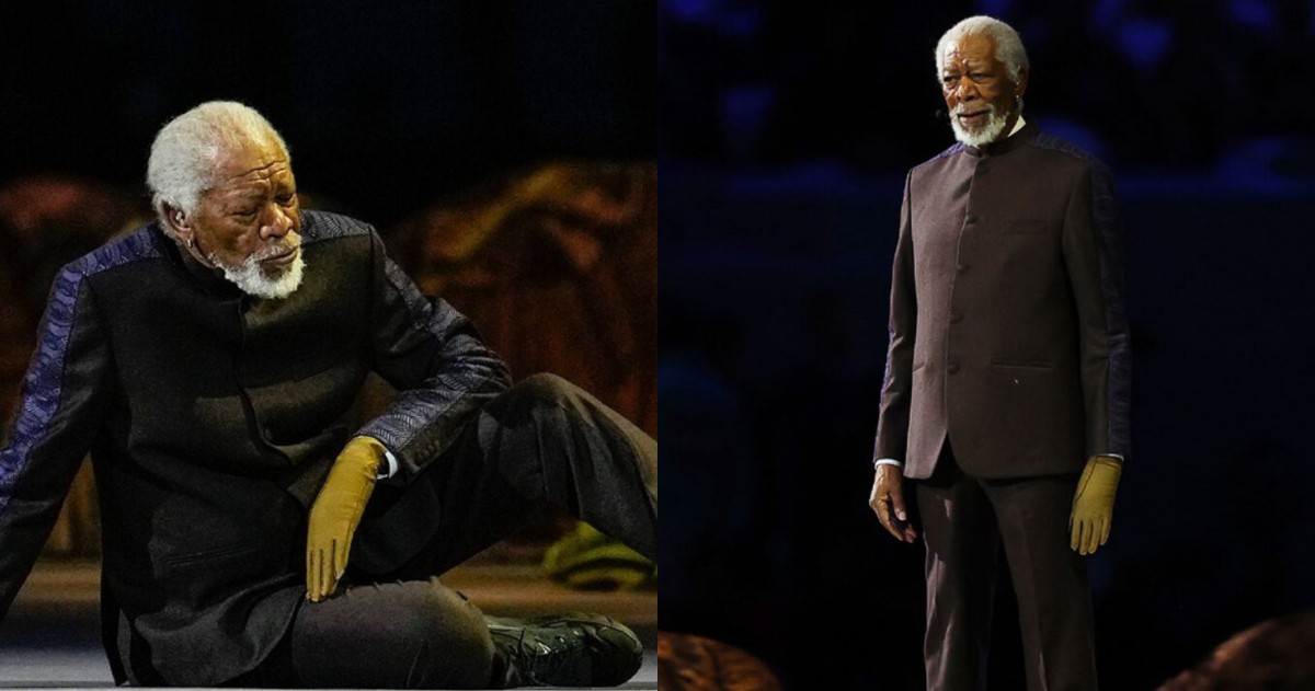 Στο φαντασμαγορικό σόου, ο 85χρονος Μόργκαν Φρίμαν εμφανίστηκε στο βγήκε στο στάδιο “Al Bayt” φορώντας ένα καφετί, μεγάλο, γάντι στο αριστερό του χέρι.