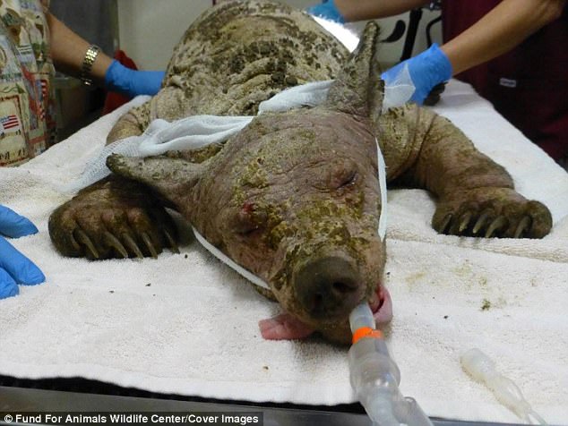 Σύμφωνα με τους ειδικούς που την εξέτασαν, είχε την χειρότερη μορφή ψώρας που είχαν δει ποτέ και για να την βοηθήσουν, αποφάσισαν να την μετακομίσουν σε ένα καταφύγιο ζώων όπου για δυο χρόνια υποβλήθηκε σε εντατικές θεραπείες ίασης και αποκατάστασης.