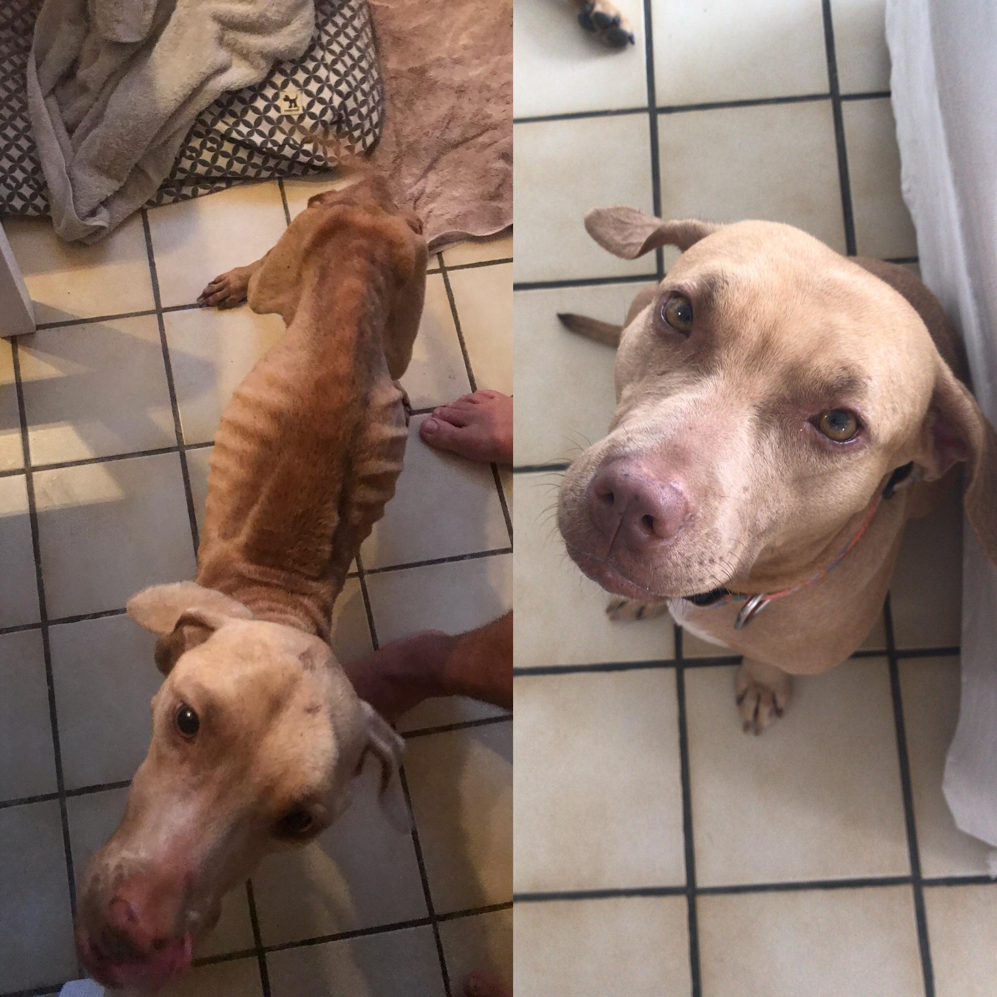 “Πήδα μέσα και δώσε μου το σκύλο”, είπε. Μπήκα μέσα, την έβγαλα έξω, δίνοντάς την στον κύριο με τα ράστα. Μετά είπαμε αντίο. Περνάω αρκετές φορές έξω από αυτό το σπίτι, αλλά ξέρω πως αυτό που έκαναν είναι σημαντικό. Υιοθετήστε και σας παρακαλώ μην αγοράζετε». Κάποιοι θεώρησαν… άτιμο αυτό που έκανε ο εν λόγω κύριος, άλλοι, όμως, βρήκαν «ηρωική» την κίνησή του. Δείτε στην εικόνα την… τρομακτική διαφορά της σκυλίτσας, μέσα σε δύο μόλις μήνες!
