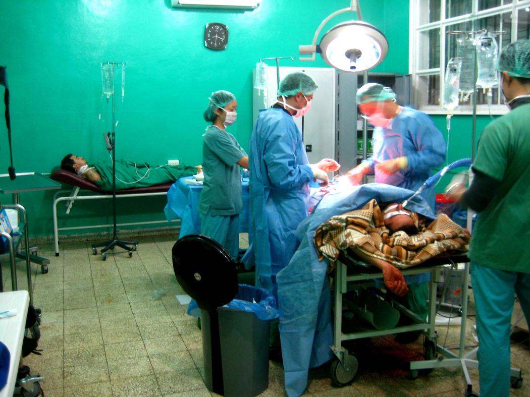 Χειρουργείο του Δημήτρη στην πόλη Αζάζ της Συρίας. Στα αριστερά διακρίνεται τραυματισμένος Σύρος, στην αναμονή για να εγχειριστεί αμέσως μετά.