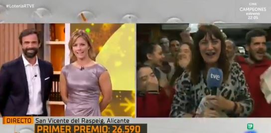 Ισπανίδα ρεπόρτερ: Πρόκειται για την Ναταλία Εσκουδέρο, η οποία εργάζεται στην RTVE. Η ίδια ανακοίνωσε σε ζωντανή μετάδοση πως δεν θα πήγαινε την επόμενη μέρα στη δουλειά της. Η παραίτησή της οφείλονταν στο γεγονός πως είχε κερδίσει ένα από τα νικητήρια δελτία στο χριστουγεννιάτικο λαχείο της El Gordo.
