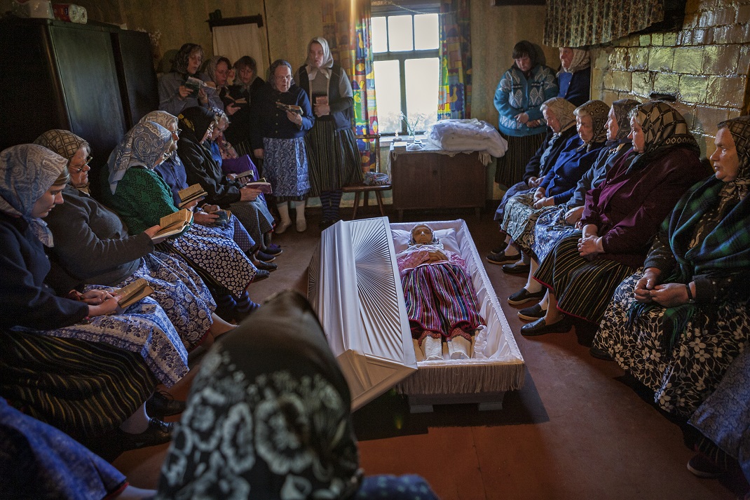 Μάλιστα, οι γυναίκες δε δίστασαν να την καλέσουν και στην κηδεία μιας φίλης τους. Η φωτογράφος λοιπόν, επισκέφτηκε το σπίτι της Koksi Leida, μόλις τρεις ώρες αφού είχε φύγει από τη ζωή. Οι γειτόνισσες έδωσαν στη φωτογράφο να φορέσει την μπλε παραδοσιακή φορεσιά πένθους (το μπλε στην κουλτούρα τους συμβολίζει τη θλίψη) και την άφησαν να παρακολουθήσει την αγρυπνία, όσο οι φίλες της τραγουδούσαν και μοιρολογούσαν.