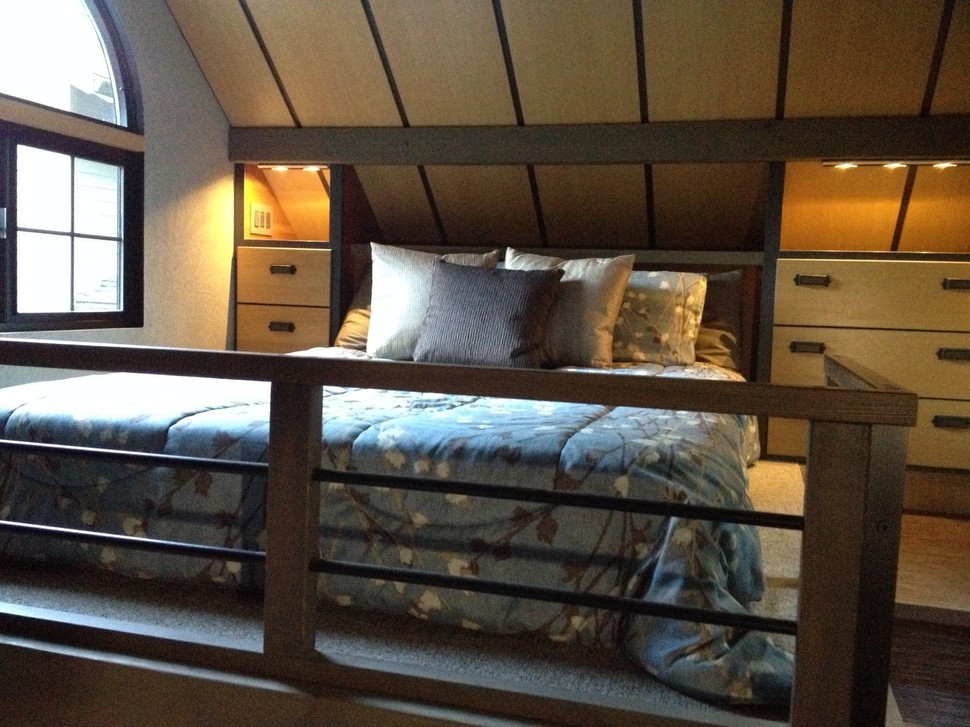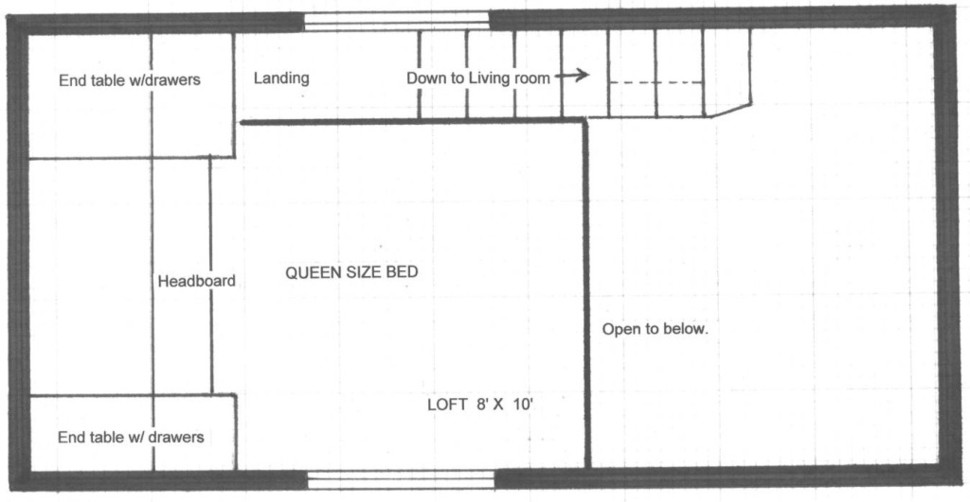 Για να επιτύχει να έχει σε έναν τόσο μικρό χώρο και ένα ευρύχωρο σαλόνι, αλλά και μία κρεβατοκάμαρα όπου θα χωρά υπέρδιπλο κρεβάτι, κατασκεύασε έναν εσωτερικό loft. Αυτό βρισκόταν ακριβώς πάνω από την κουζίνα στον οποίο βρίσκεται το υπνοδωμάτιο. Αντίθετα, στη σκάλα που οδηγεί στη σοφίτα-κρεβατοκάμαρα, έχουν ενσωματωθεί αποθηκευτικοί χώροι, αλλά και ηλεκτρικό τζάκι.