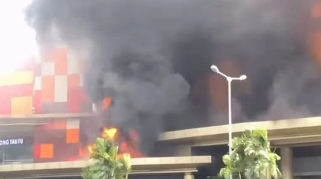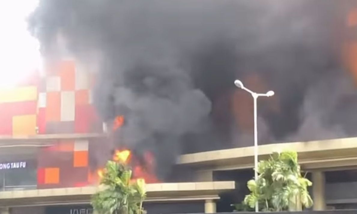 Εικόνες δείχνουν πυκνό μαύρο καπνός από το πάνω μέρος του κτιρίου Mall Ciputra.