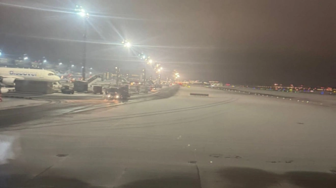 Πληρώματα για την αντιμετώπιση των χειμερινών συνθηκών έχουν αναπτυχεί σε όλο το αεροδρόμιο, ενώ 34 οχήματα για την απομάκρυνση του πάγου επιχειρούν στις θέσεις στάθμευσης των αεροσκαφών.