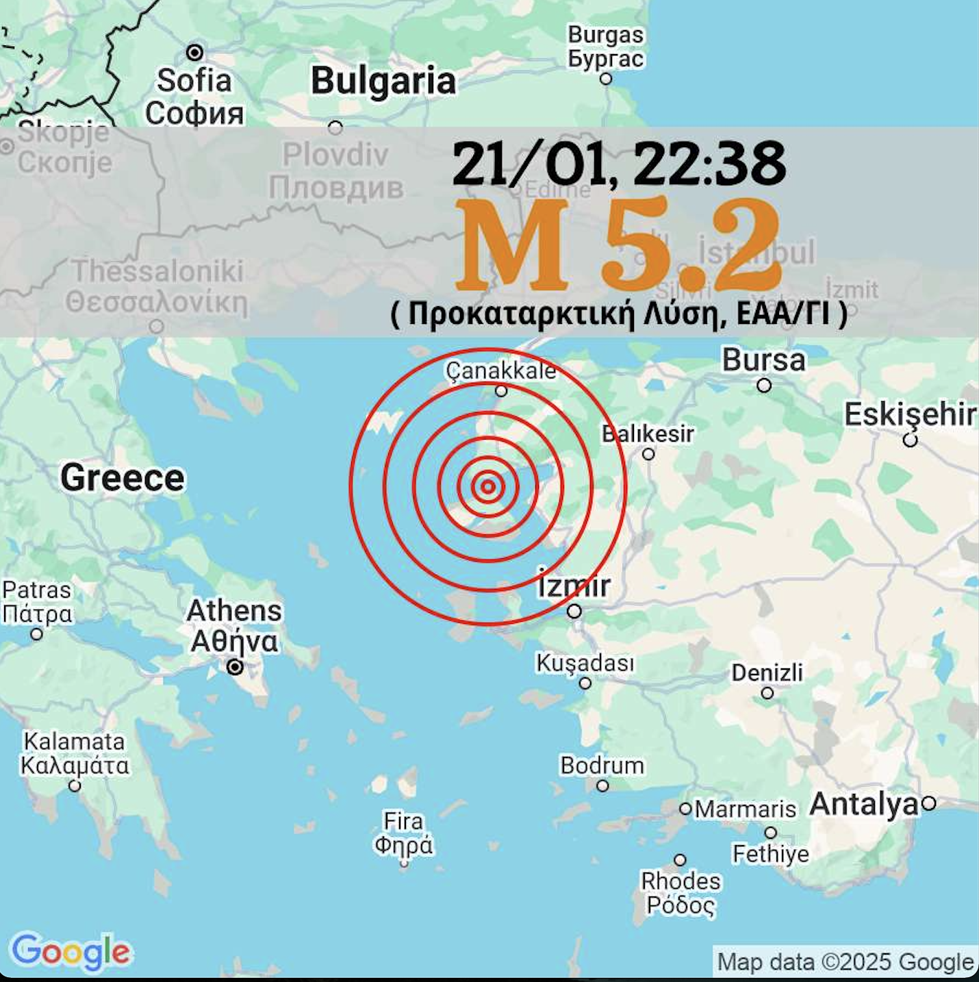 Το τουρκικό σεισμολογικό κέντρο Kandilli αναφέρει ότι ο σεισμός είχε μέγεθος 5,2 Ρίχτερ.