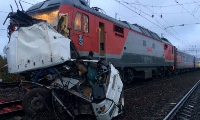 «Ο οδηγός του λεωφορείου εισήλθε στη διάβαση μπροστά από ένα τρένο εμπορευμάτων που πλησίαζε», ανακοίνωσε, μέσω του Telegram, η περιφερειακή διεύθυνση σιδηροδρόμων του Λένινγκραντ.