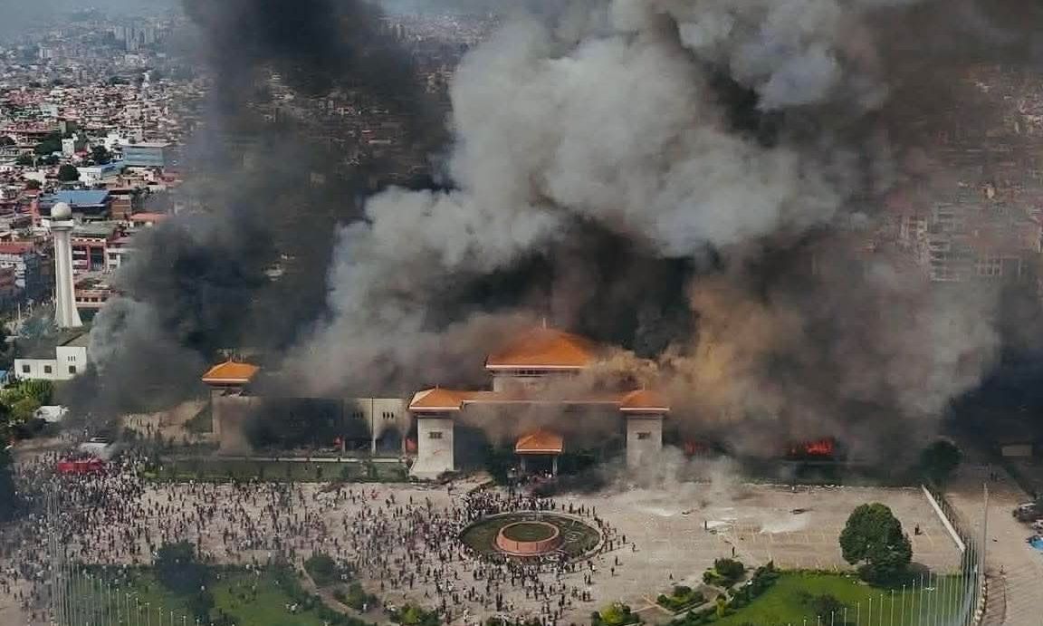 🚨BREAKING: Nepal’s Parliament in Kathmandu has been set on fire: Leaving Government ministers fleeing by Helicopters. pic.twitter.com/YxwIVMXQAz