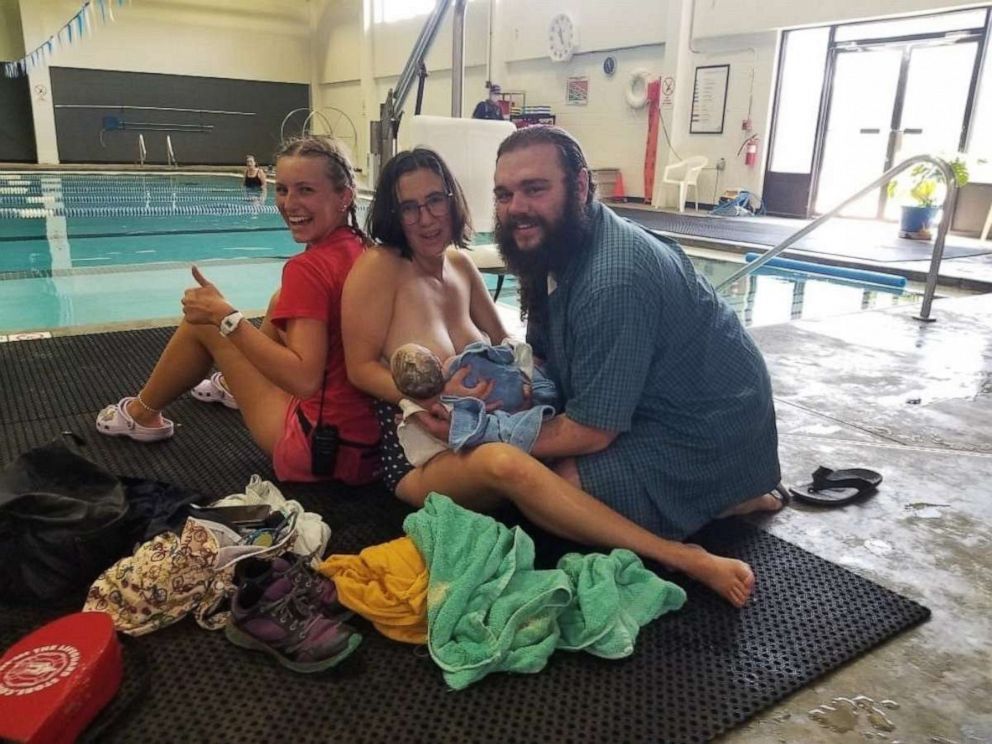 Αν και είχαν περάσει λίγες μέρες από την ημερομηνία τοκετού και είχε ήδη κάποιες ήπιες συσπάσεις, δεν ένιωθε ότι υπήρχαν «καθαρά» σημάδια ότι θα γεννούσε και έτσι, ενώ βρισκόταν μέσα στην πισίνα και κολυμπούσε, κατάλαβε ότι είχε φτάσει η ώρα της γέννας.