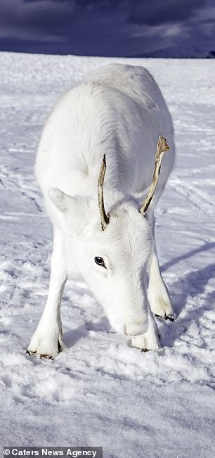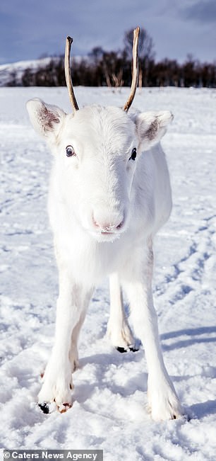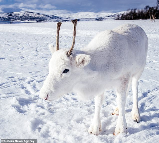 Λευκός τάρανδος: Στην βόρεια Νορβηγία εντοπίστηκε αυτός ο αξιολάτρευτος και σπανιότατος μικρός τάρανδος που φαίνεται στη φωτογραφία.