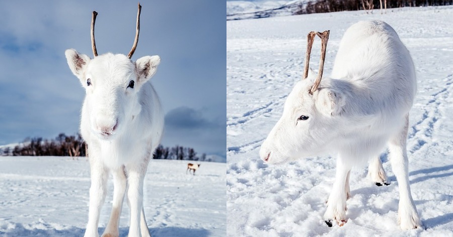 Λευκός τάρανδος: Στην βόρεια Νορβηγία εντοπίστηκε αυτός ο αξιολάτρευτος και σπανιότατος μικρός τάρανδος που φαίνεται στη φωτογραφία.