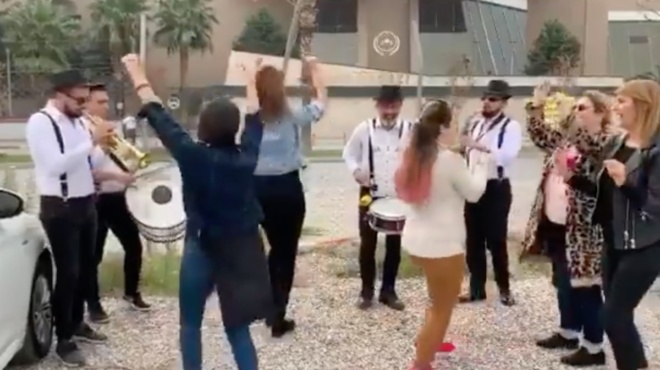 Γλέντι έστησε έξω από το δικαστήριο μια γυναίκα στη Σμύρνη που κατάφερε να πάρει διαζύγιο έπειτα από τριάμισι χρόνια προσπαθειών.