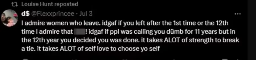 Λίγες ημέρες πριν τη δολοφονία, η Λουίζ, η οποία φέρεται να είχε χωρίσει άσχημα με τον 26χρονο δράστη, είχε αναρτήσει μήνυμα στο Χ επαινώντας «τις γυναίκες που φεύγουν» από μια σχέση για τη «δύναμή» τους.