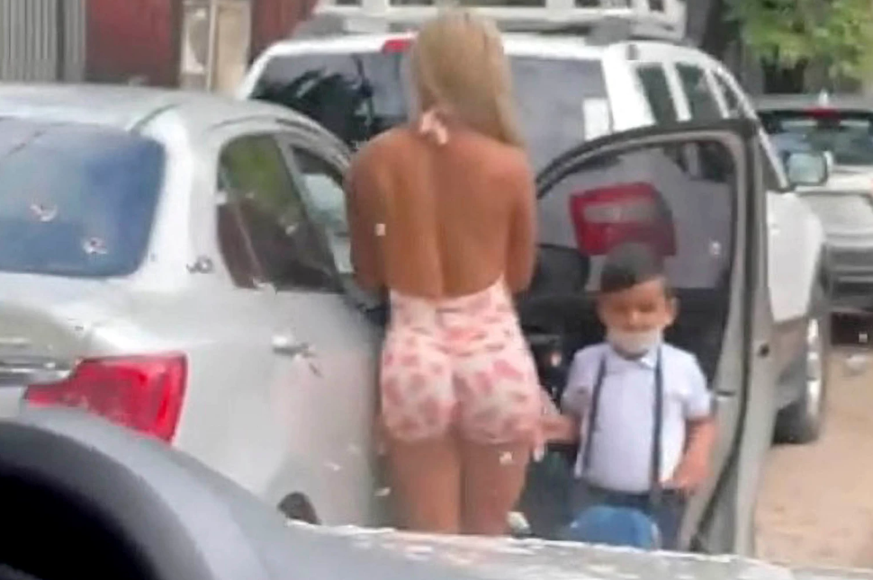 Καθώς η Βανέσα γυρίζει για να ξαναμπεί στο αυτοκίνητό της, η γυναίκα που τραβάει το βίντεο σχολιάζει ότι τα ρούχα είναι «ακατάλληλα» για να τα βλέπουν μικρά παιδιά.