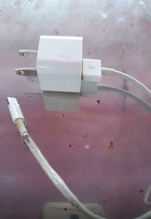 Παρόλο που ήταν συνδεδεμένος με το τηλέφωνο, το τηλέφωνο δεν φόρτιζε – το μέρος του καλωδίου που ήταν πιο κοντά στο τηλέφωνο ήταν πλήρως καμένο.