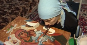 Γυναίκα χωρίς χέρια ζωγραφίζει αγιογραφίες με το στόμα και εντυπωσιάζει με τις δημιουργία της