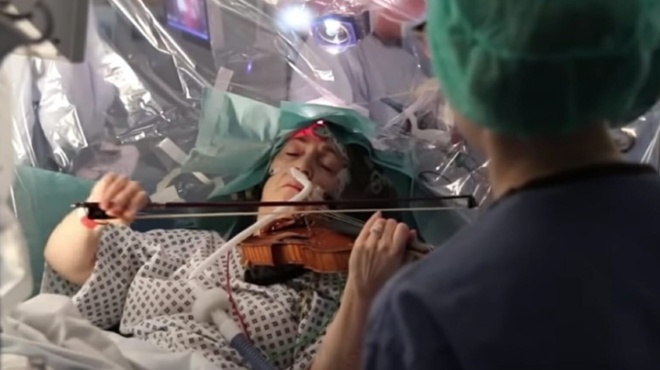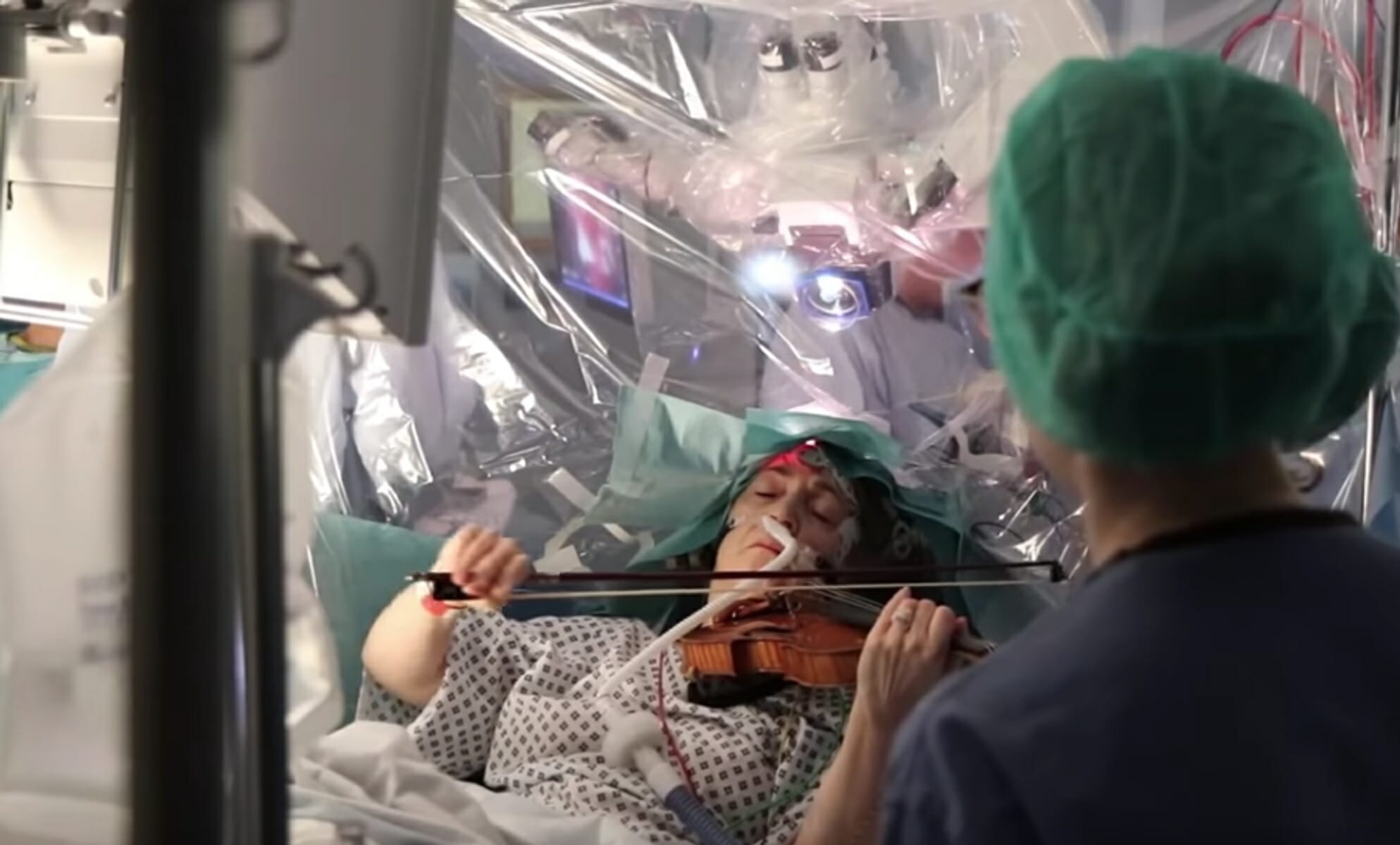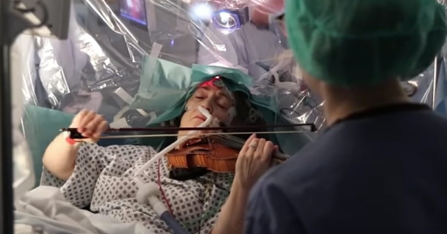 Παίξιμο βιολιού σε χειρουργείο στον εγκέφαλο: Στιγμιότυπο και βίντεο, με την Ντάγκμαρ Τέρνερ να παίζει βιολί, την ώρα που τη χειρουργούσε, ο Κεϊούμαρς Ασκάν