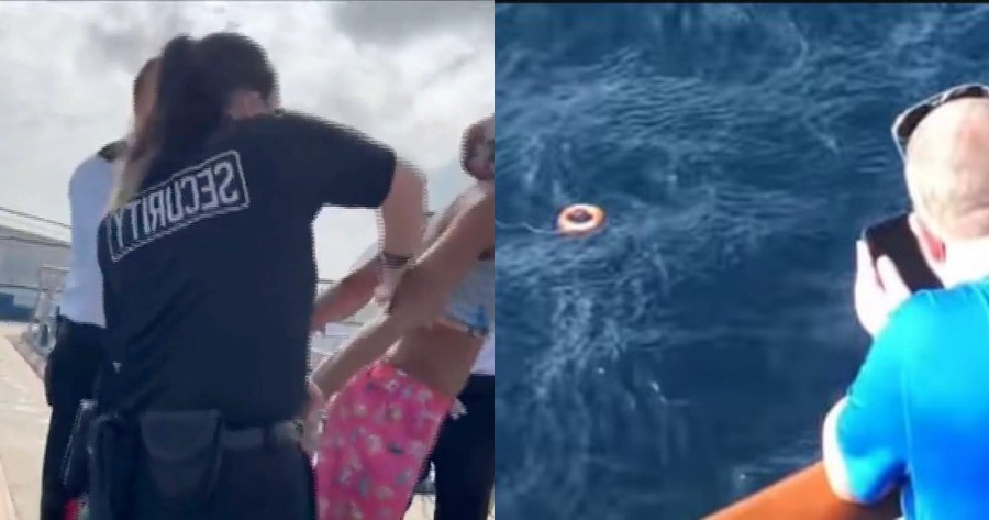 Ωστόσο, η γυναίκα συνέχιζε να ενοχλεί και τότε οι άνθρωποι της ασφάλειας την ακινητοποίησαν και προσπάθησαν να την απομακρύνουν από τον χώρο, αλλά καθώς την απομάκρυναν με τα χέρια πίσω και χωρίς να της φορέσουν χειροπέδες, εκείνη κατάφερε να ξεφύγει και έφτασε μέχρι τα κιγκλιδώματα του καταστρώματος, ανέβηκε επάνω και πήδηξε στο κενό από τον 10ο όροφο του πλοίου και έπεσε στη θάλασσα.