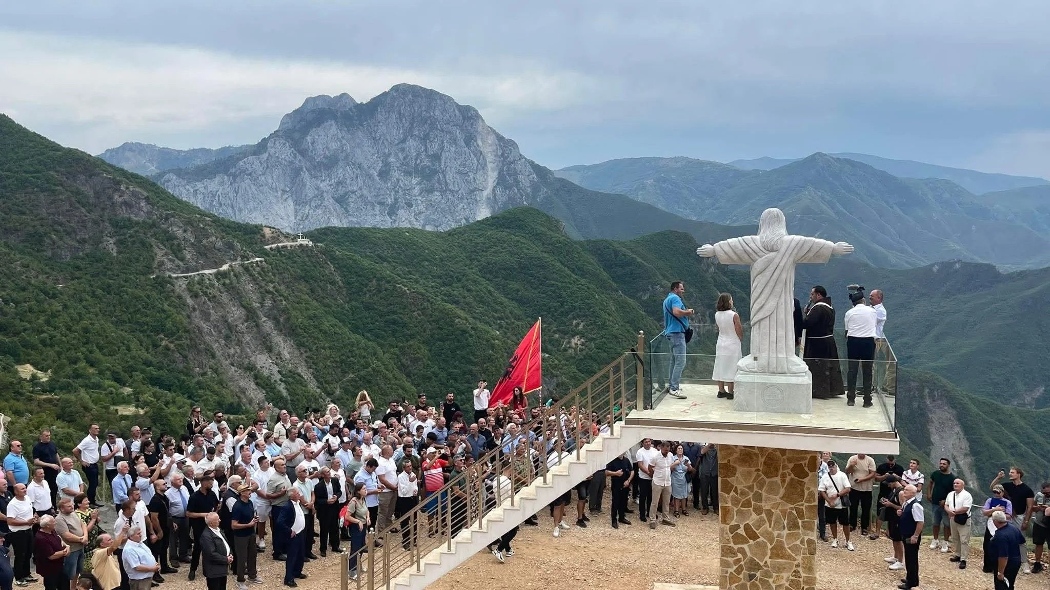 The statue of Jesus Christ was erected at the top of the Albanian Alps. This marks a significant event as it is noted as the first time in the history of the Merturi region that such a monument has been erected. From 1944 until 1992, religion was banned in communist Albania.… pic.twitter.com/cUl4ih45E1