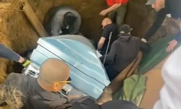 Κατέρρευσε η πλατφόρμα την ώρα που το κατέβαζαν για να ενταφιαστεί ο εκλιπών