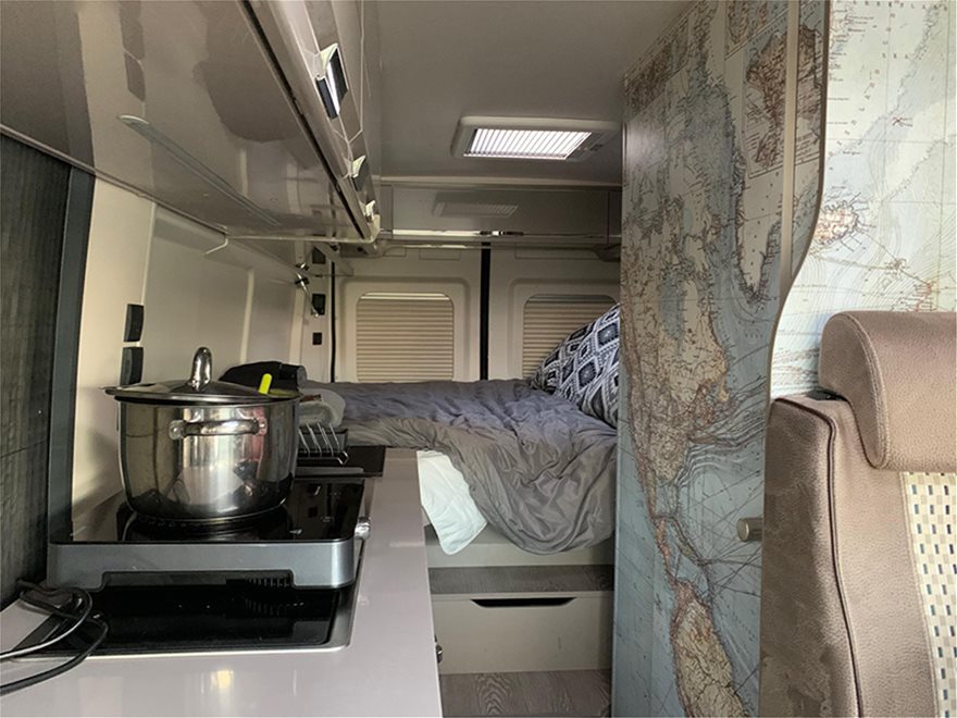 Η αυτονομία ρεύματος του βαν φθάνει τα 220V. Από εκεί και πέρα, διαθέτει 120 λίτρα νερό και 90 γαλόνια ντίζελ, καθώς και 80 γαλόνια πετρέλαιο σε μεταλλικά μπετόνια. Αξίζει να σημειωθεί επίσης πως έχει και καλοριφέρ, θερμοσίφωνο υγραερίου, τουαλέτα με μπάνιο, κρεβάτι και ένα μικρό γραφείο.