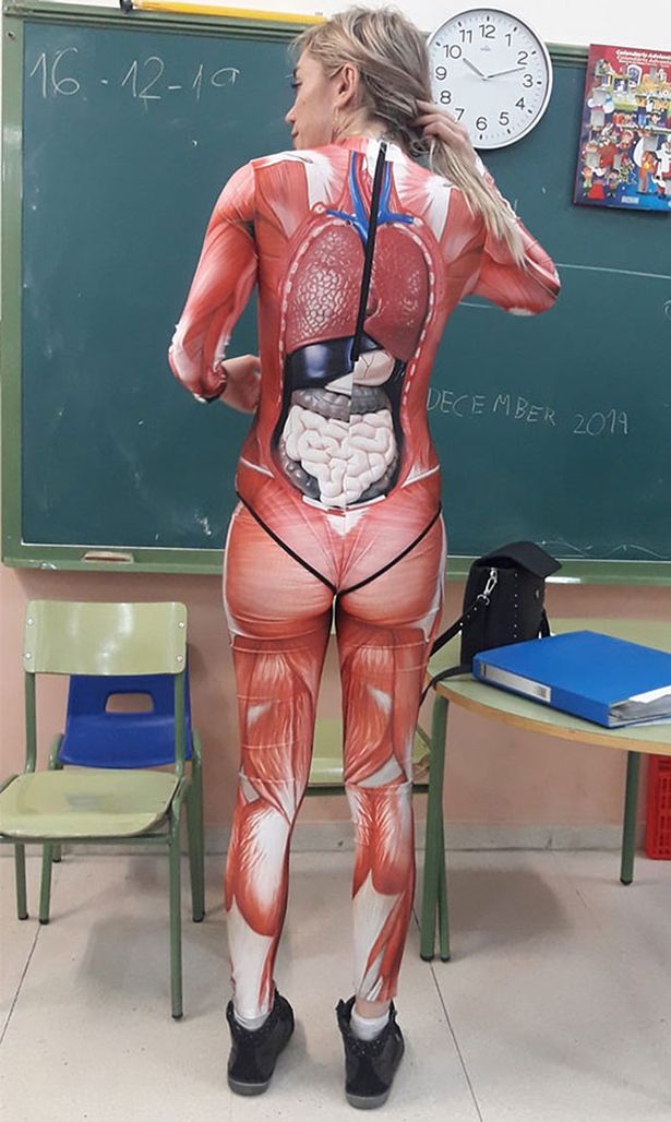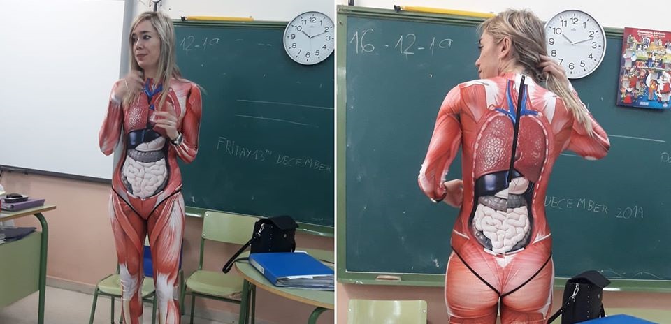 Απίστευτη στολή δασκάλας: Μία δασκάλα από την Ισπανία επέλεξε με έναν ιδιαίτερο τρόπο να πραγματοποιήσει, το μάθημά της. Το συγκεκριμένο μάθημα έχει να κάνει με εκείνο της ανατομίας. Πρόκειται για μία πρωτότυπη ιδέα, η οποία είχε στόχο.