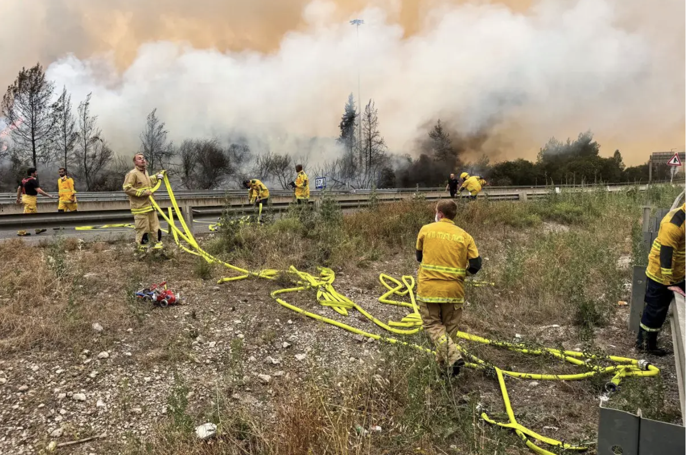 More than 100 firefighting teams have been dispatched, communities have been evacuated, people have abandoned their cars on the road…