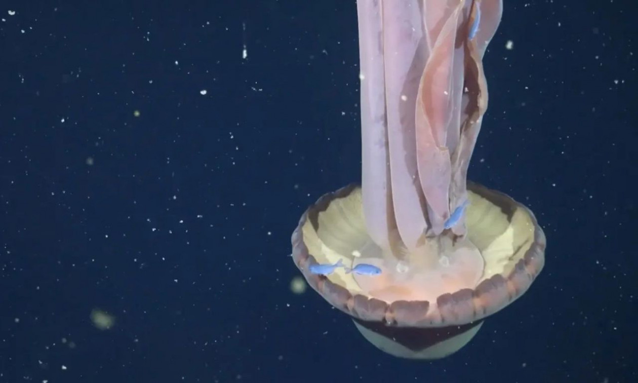 Μία μέδουσα που έχει το μήκος ενός σχολικού λεωφορείου κατέγραψε υποβρύχια κάμερα στα ανοιχτά των ακτών της Αργεντινής.