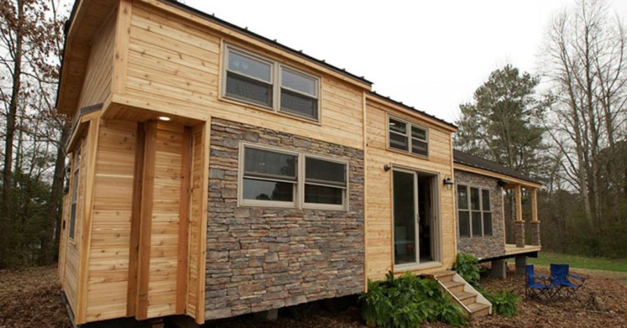 Σπίτι με ελάχιστο κόστος: Πρόκειται για μια κατασκευή που ανήκει στο Tiny House Nation. Το συγκεκριμένο σπίτι διαθέτει κλασσικό εξωτερικό χώρο. Από εκεί και πέρα, ο συνδυασμός που έχει επιλέξει, ο κατασκευαστής του είναι ΑΠΛΆ τέλειος. Αυτό, διότι συνδυάζει άψογα το ανοιχτόχρωμο ξύλο, με την πέτρα. Πρόκειται για δύο υλικά, τα οποία μπορούν να κάνουν τη διαφορά σε ένα σπίτι, όσον αφορά την εξωτερική όψη από αυτό.
