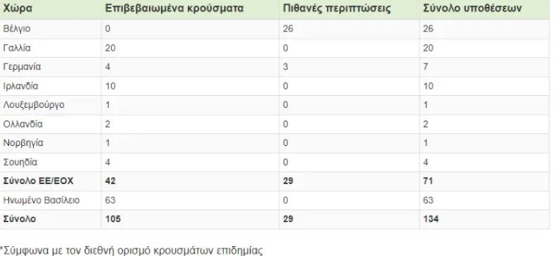 Τουλάχιστον 134 περιπτώσεις κρουσμάτων έχουν αναφερθεί από το Ευρωπαϊκό Κέντρο Πρόληψης και Ελέγχου Νοσημάτων, κυρίως σε παιδιά κάτω των 10 ετών.